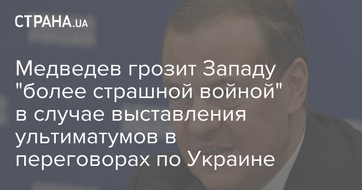 Заместитель председателя Совета безопасности РФ Дмитрий Медведев пригрозил "более страшной войной", если Запад будет ставить ультиматумы Кремлю в переговорном процессе относительно конфликта РФ с Украиной.