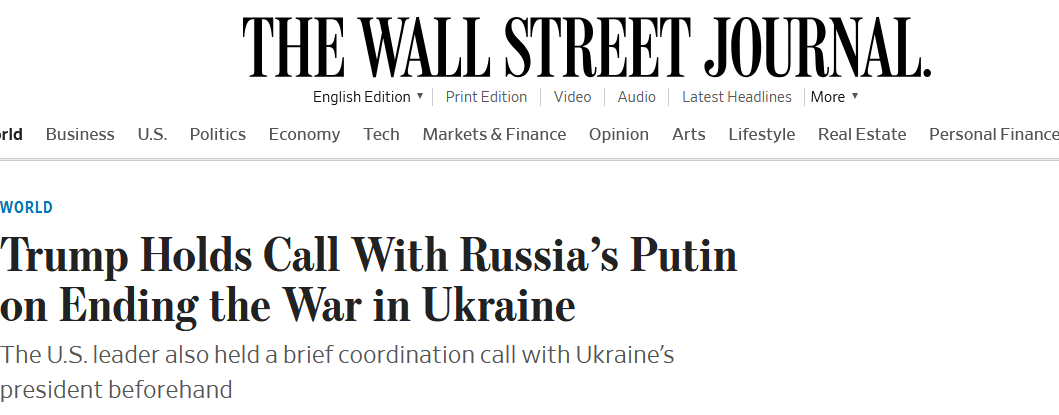 Такие сведения о его коротком разговоре перед длинным звонком Трампа - Путину приводят журналисты газеты The Wall Street Journal со ссылкой на источник.