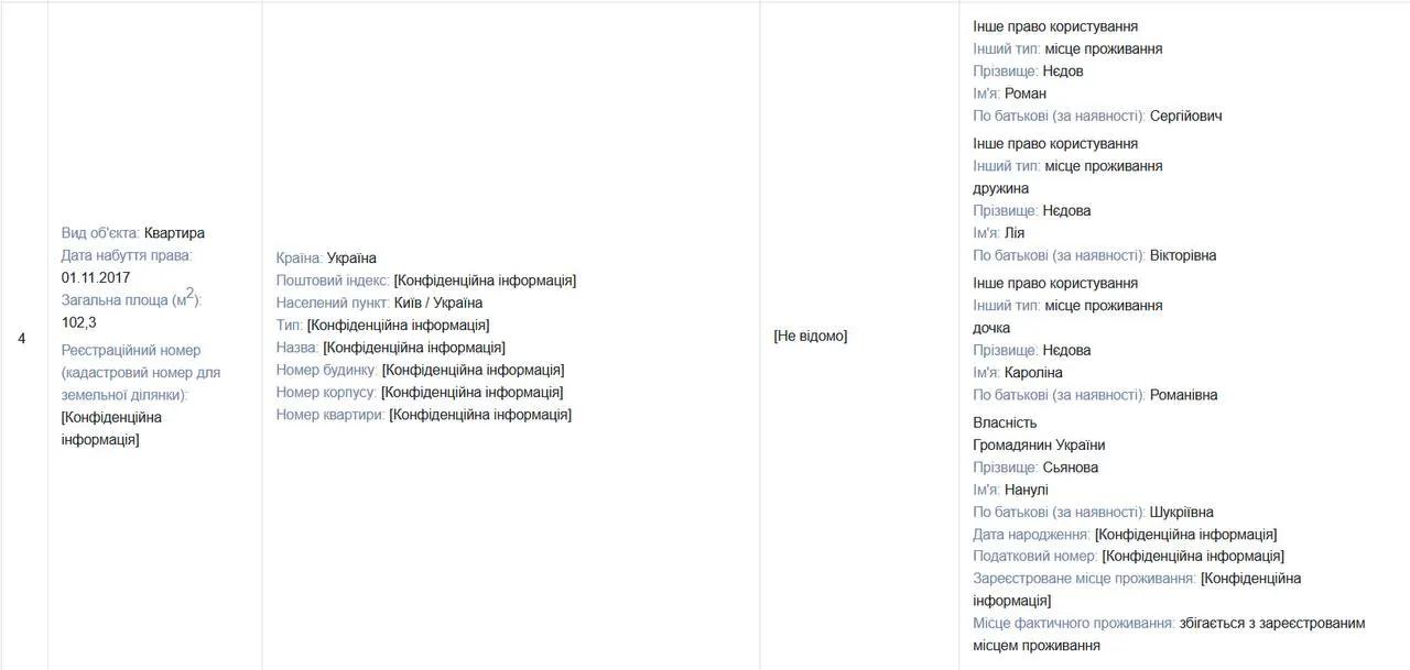 Источники журналистов приводят в качестве примера родственников заместителя руководителя подразделения НАБУ Романа Недова, которые покупают дорогую недвижимость и автомобили, указывая в декларации о доходах заниженную стоимость приобретений или просто не заполняя этот пункт, а затем передаривают эти активы супруге сотрудника бюро.