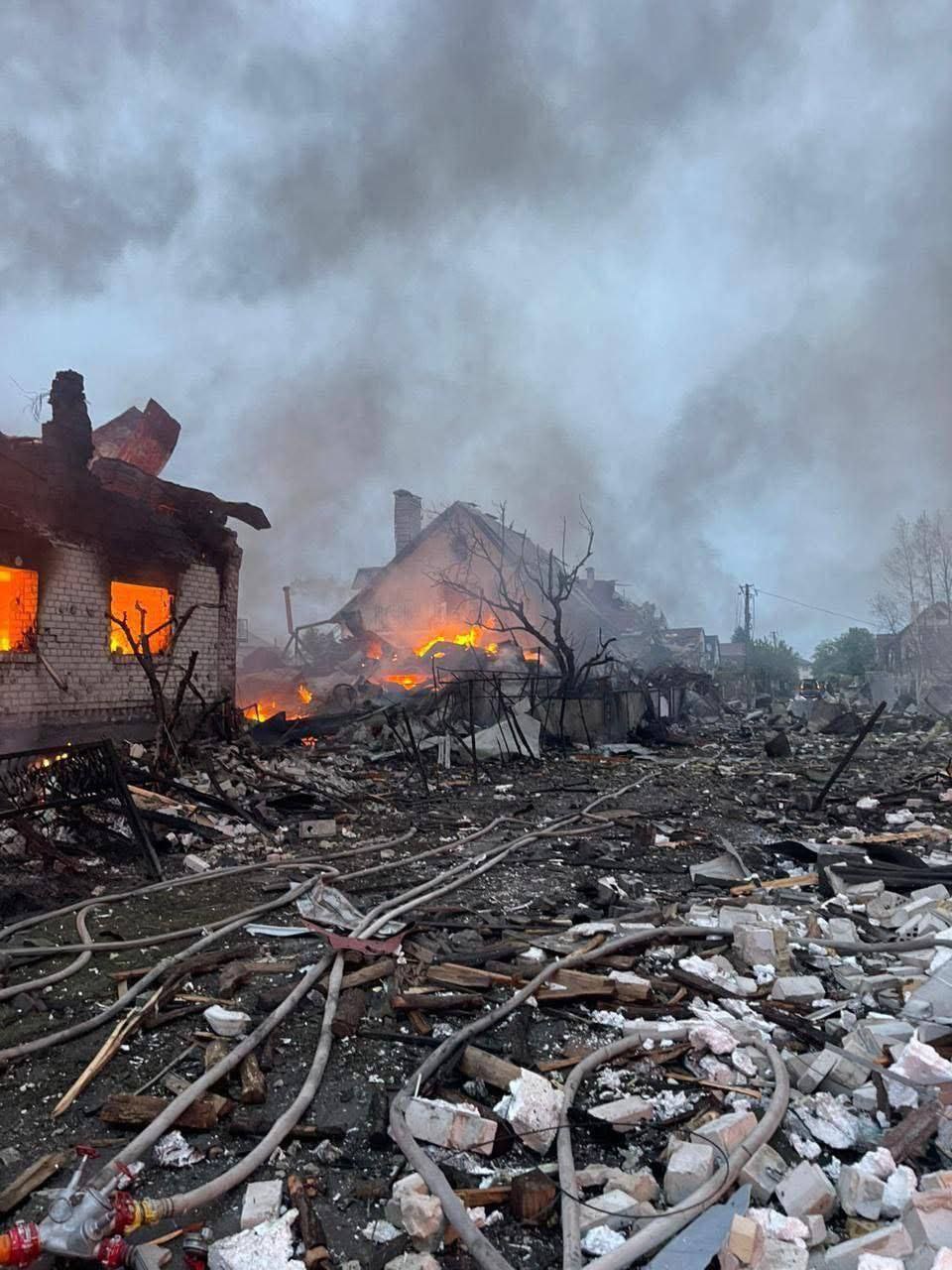 В селе Мархаловка под Киевом после ночной атаки выгорели несколько домов по одной и той же улице.