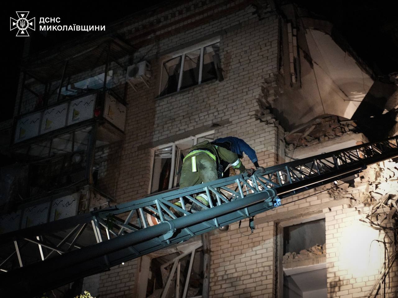 В Николаеве в результате ночной атаки БПЛА произошло попадание в пятиэтажный жилой дом. Возник пожар, сообщает ГСЧС.