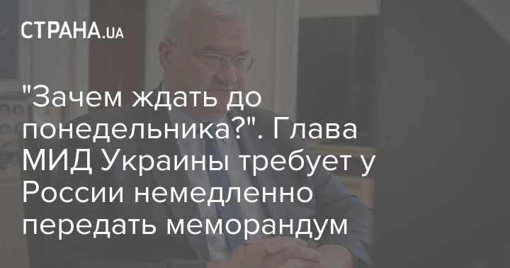"Зачем ждать до понедельника?". Глава МИД Украины требует у России немедленно передать меморандум