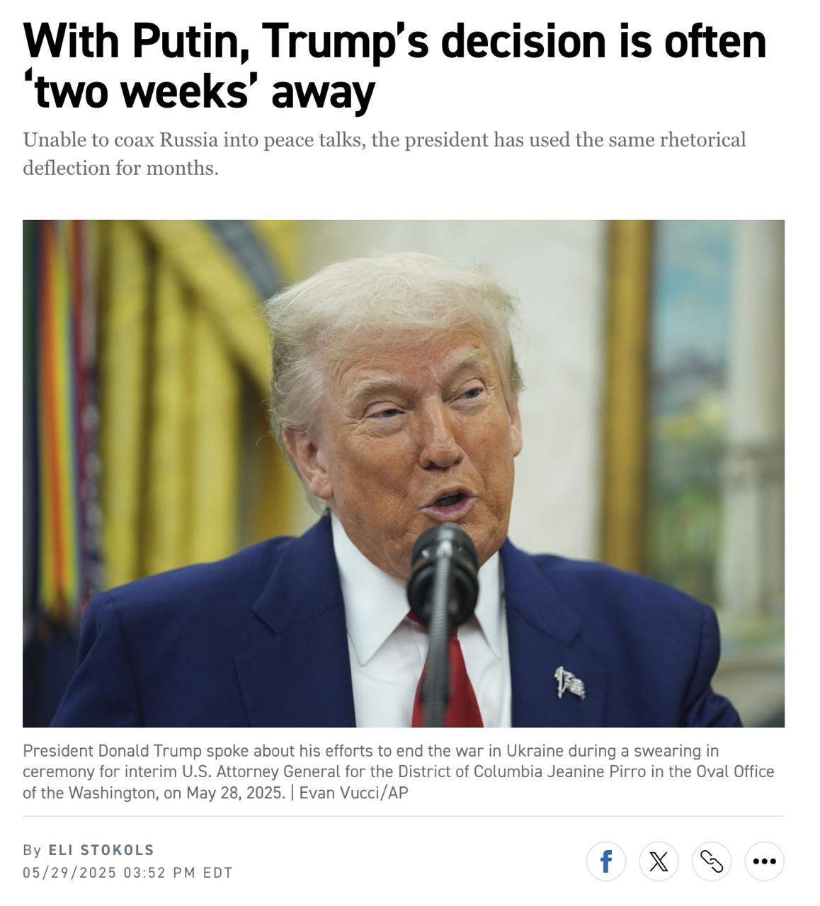 "Совершенно очевидно, что что-то удерживает его от того, чтобы оказывать большее давление на Путина. Возможно, он больше всего хочет перезагрузки отношений с Россией, даже больше, чем мира. Если он просто хочет закончить войну, чтобы заключить эти сделки (с Путиным - Ред.), то он, возможно, взвешивает стоимость отравления их потенциальных отношений", - заявил европейский чиновник.