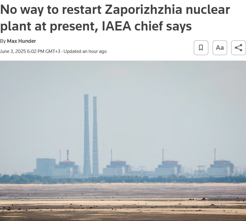 По словам Гросси, для запуска Запорожской АЭС, находящейся под контролем России, сейчас нет необходимых условий: нет воды для охлаждения и стабильного электроснабжения.