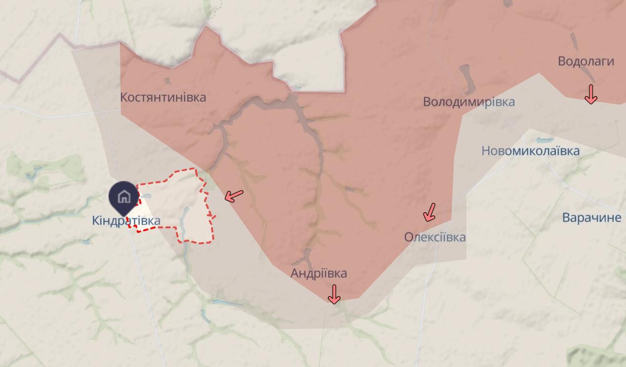 Подтверждается, что россияне уже зашли в Кондратовку, но пока не зафиксирован ее захват. В Алексеевке россияне заняли северную часть села и скорее всего скоро захватят ее полностью.
