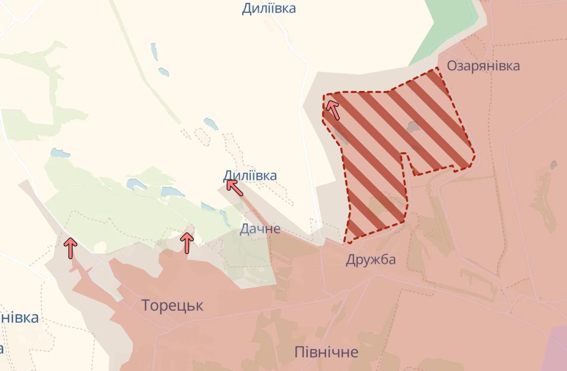 Также у них существенное продвижение в районе Дылеевки к северу от Торецка.