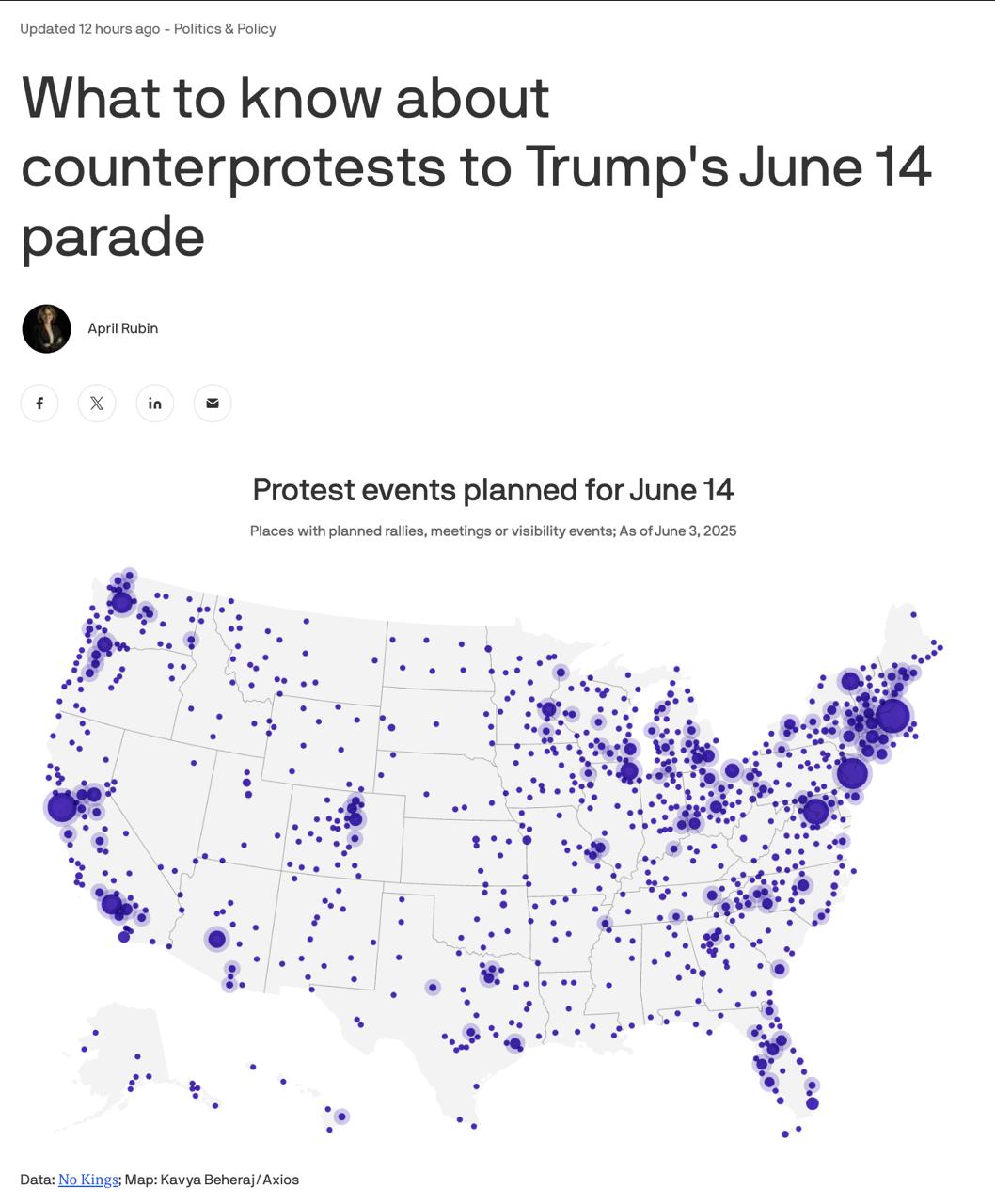 Более 100 ориентированных на Демократическую партию США организаций собирают на 14 июня, день рождения президента США Дональда Трампа, массовые протесты против его действий. По состоянию на 10 июня ​более 13 000 человек подтвердили свое участие в 320 мероприятиях по всей стране.