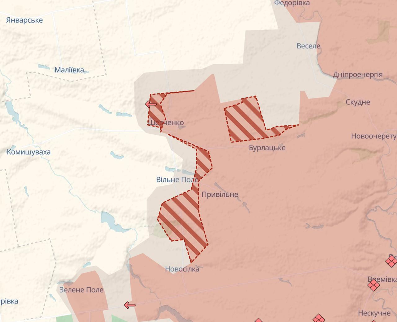 В то же время минобороны РФ заявляет о захвате села Шевченко, а также Новосергеевки, что также у границы с Днепропетровской областью, но ближе к Покровску. Потерю Новосергеевки подтверждает боец ВСУ с позывным Мучной.