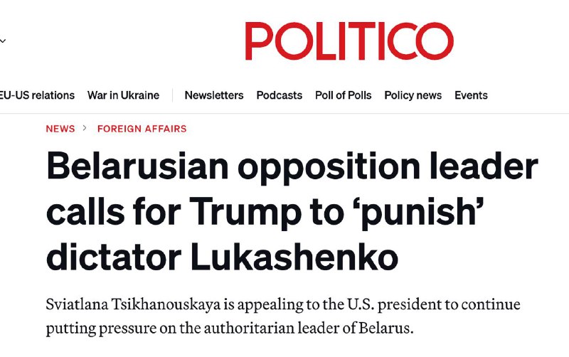 Белорусский оппозиционер Светлана Тихановская призвала главу Белого дома Дональда Трампа не восстанавливать отношения с белорусским президентом Александром Лукашенко, который недавно освободил ее супруга Сергея. Тихановская считает, что Лукашенко следует наказать.