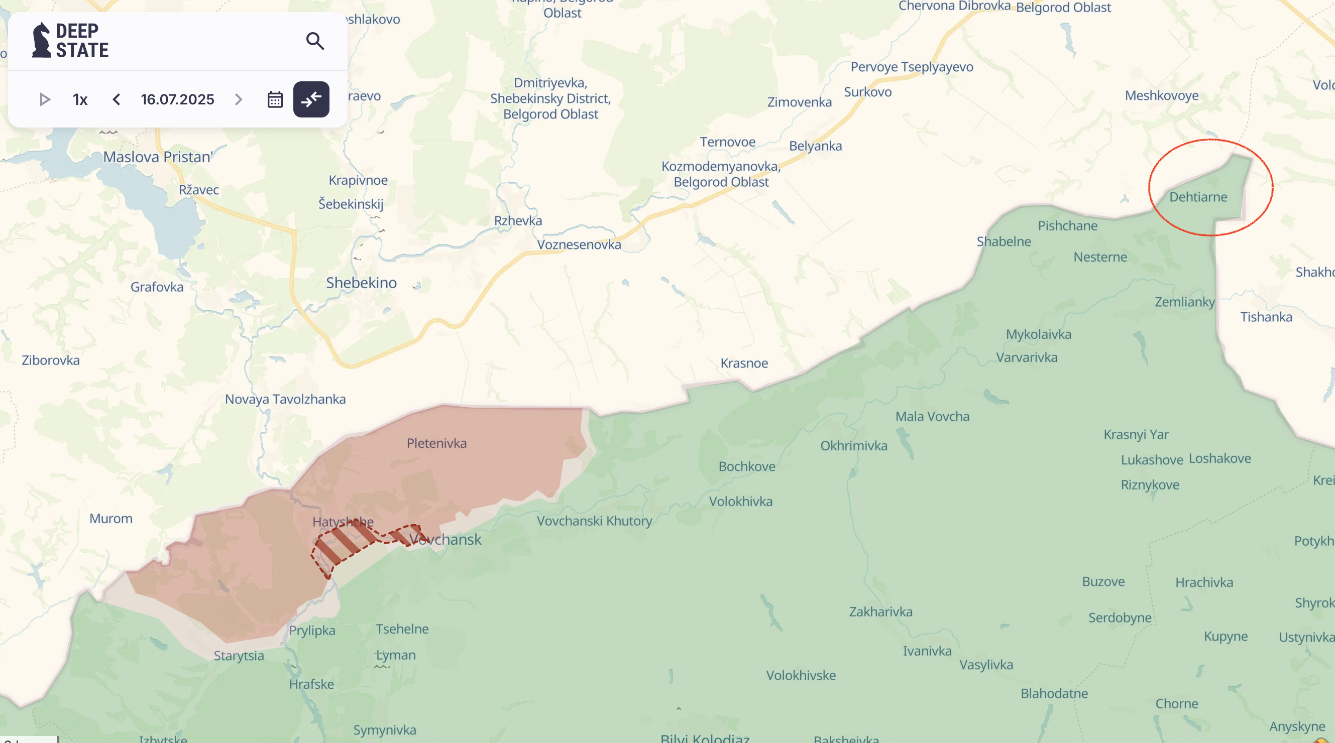 Минобороны РФ заявляет о захвате Дегтярного в Харьковской области, что прямо на границе с РФ - это восточнее волчанского участка. Украина этого не подтверждала.