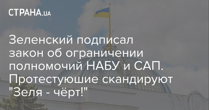 Зеленский подписал закон об ограничении полномочий НАБУ и САП. Протестуюшие скандируют "Зеля - чёрт!"