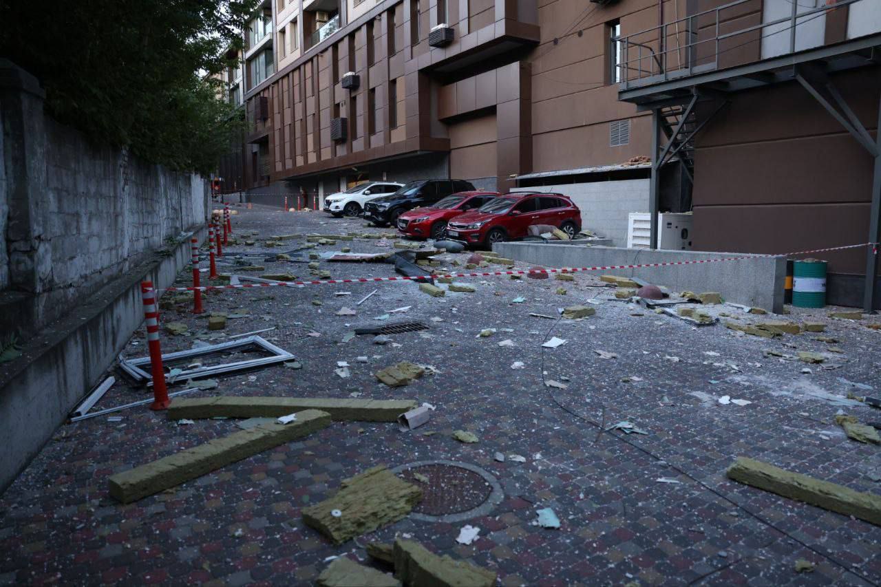 По его данным, в областном центре пострадала многоэтажка, в которой выбило стекла в около 20 окнах, и парковка, где сгорели 10 автомобилей.