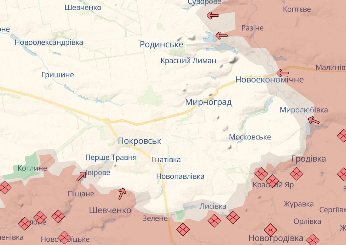 09:34 Российские войска уже штурмуют восточные окрестности Мирнограда, сообщает боец ВСУ Мучной.