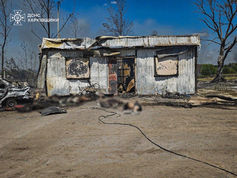 13.39 Кадры из Новоплатоновки под Боровой, где после прилета пять человек погибли около магазина. ГСЧС сообщает, что люди собрались, чтобы получить гуманитарную помощь, когда РФ нанесла удар из РСЗО.