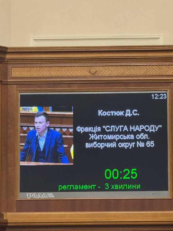 12.26 Депутат Костюк с трибуны Рады объявил, что выходит из фракции "Слуги народа" из-за ситуации с НАБУ.