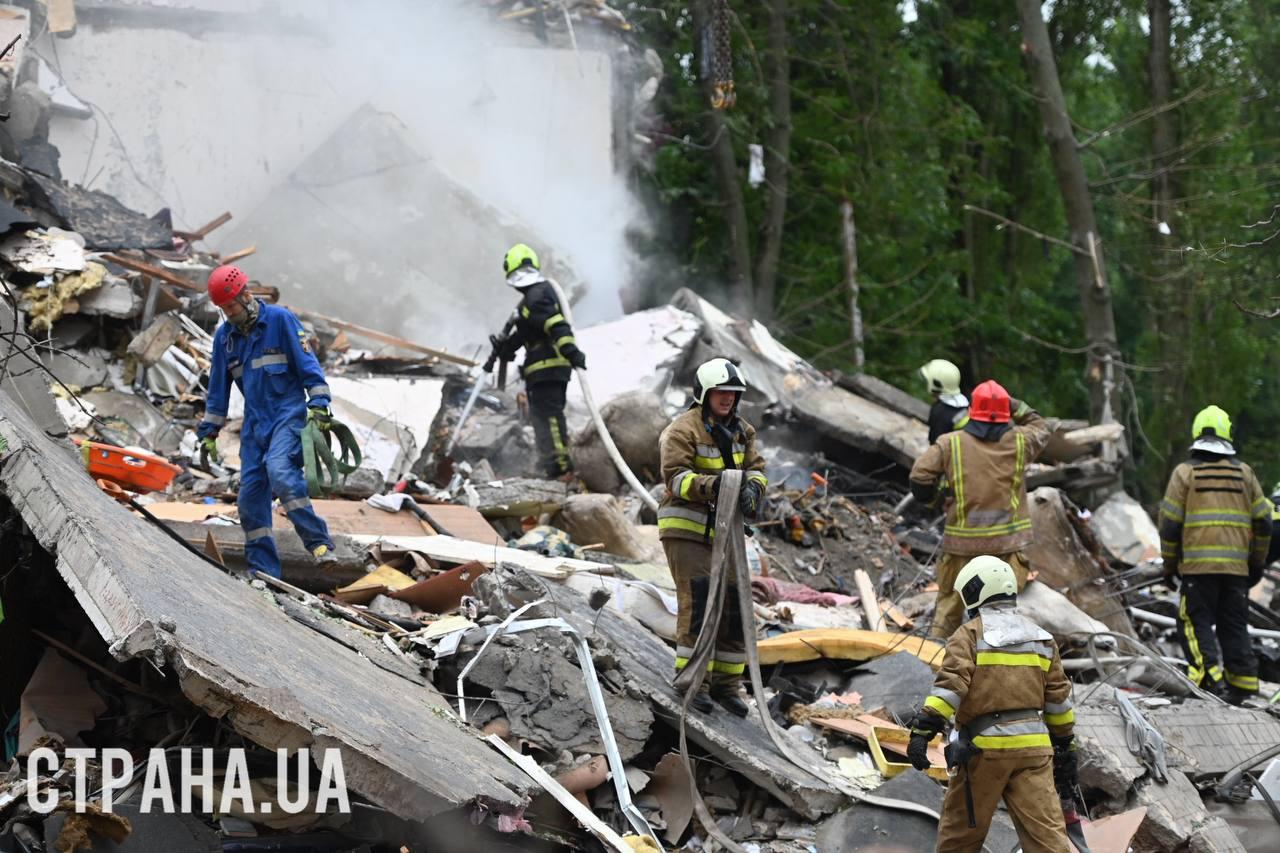 ГСЧС сообщает, что из-под завалов разрушенного подъезда деблокировали тело еще одного человека.