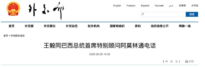 С таким заявлением выступил глава МИД Китая Ван И по итогам переговоров с Бразилией. Его слова приводит сайт ведомства.