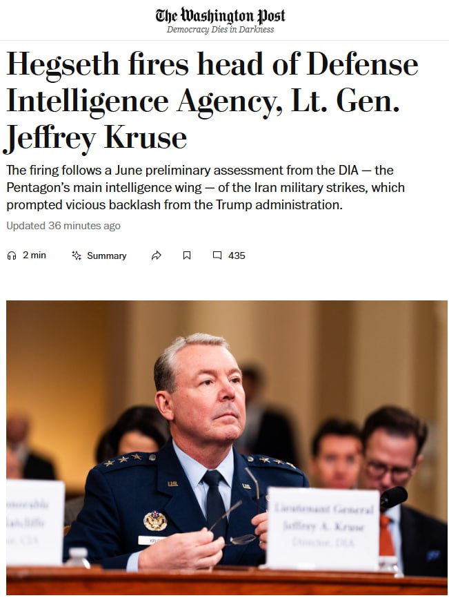 Как выяснилось, официальной причиной увольнения стало "утрата доверия". Вместе с тем источники связывают его с просочившимся в прессу отчетом о том, что после американских ударов ядерный потенциал Ирана был отброшен всего на несколько месяцев – в отличие от заявлений Хегсета и президента США Дональда Трампа о том, что этот потенциал был "уничтожен".