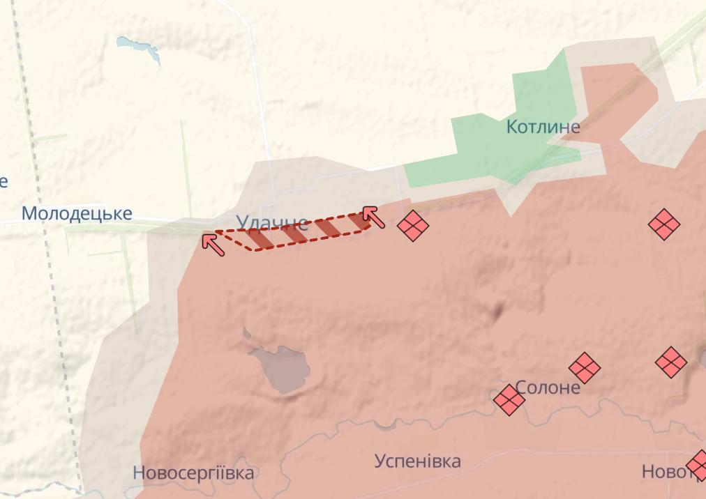 Также россияне продвинулись в Удачном, что рядом с Днепропетровской областью, западнее Покровска.
