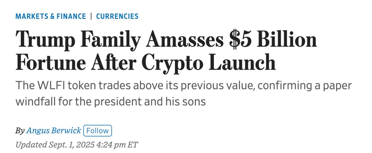 Семья Трампа заработала около $5 миллиардов на открытии торгов своей новой криптовалютой - WSJ
