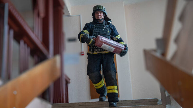 Ранее появились кадры пожара в Кабмине после ракетного удара РФ. Для борьбы с огнём привлекли вертолёт ГСЧС.