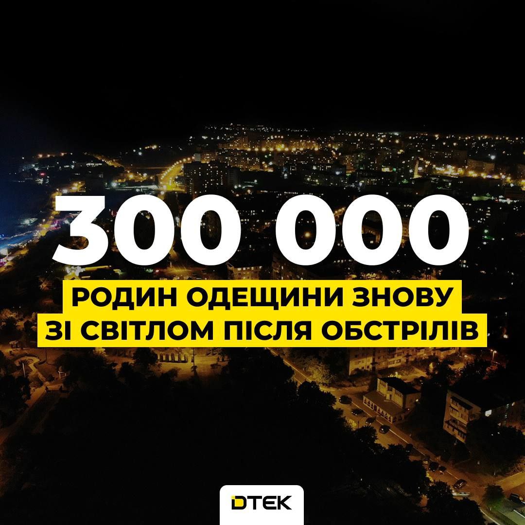 Об этом сообщает ДТЭК. По данным компании, свет уже вернули всем.