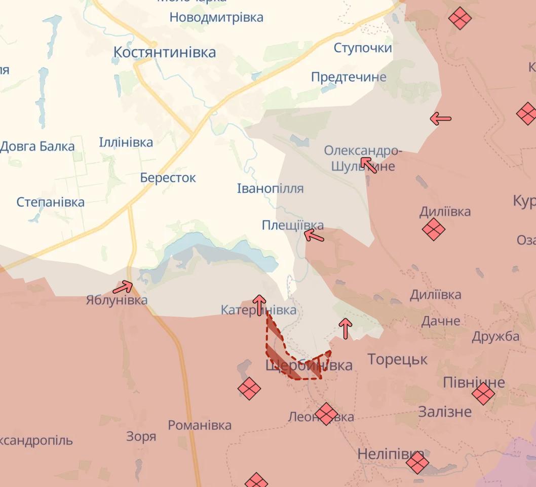 "Российские войска прорвали самую сильную и долго удерживаемую украинскую линию фронта в Донецкой области, захватив села Вы́емка и Ивано-Дарьевка, а затем вошли в город Северск с юга, уже захватив 20% его территории", - пишет Репке.