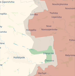 Под угрозой охвата оказались села Зеленый Гай и Червоное - территории, отбитые Украиной у россиян во время контрнаступления летом 2023 года. Также увеличилась "серая зона" к северу от Гуляйполя, она приблизилась к городу на 2,5 километра.