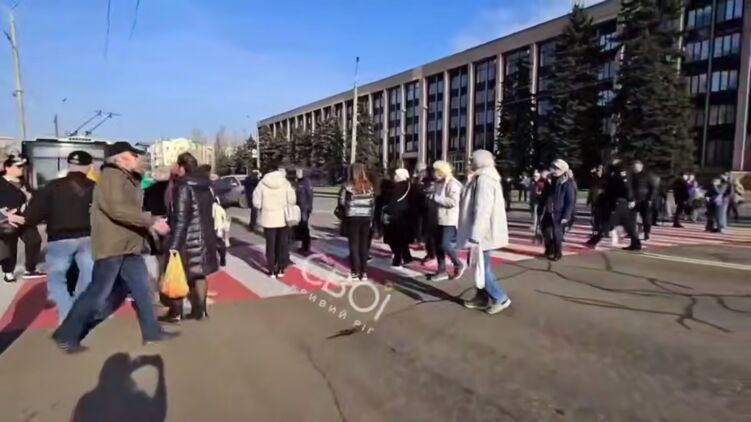 Жители Кривого Рога протестуют под горсоветом против отключений электроэнергии