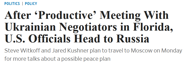 Если по ключевым спорным вопросам американцам с украинской делегацией договориться не удалось (что, по данным западных СМИ, было главной целью встречи в Майями), то не совсем понятно, с чем (и зачем) Уиткофф и Кушнер летят в РФ.
