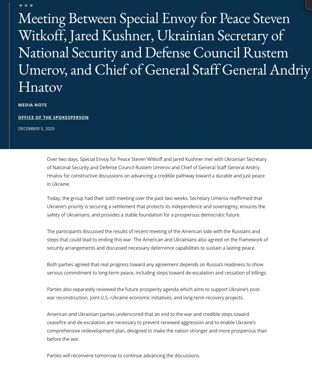Сами Уиткофф и Кушнер подобных заявлений не делали. Госсекретарь Рубио на встрече, насколько известно, не присутствовал.