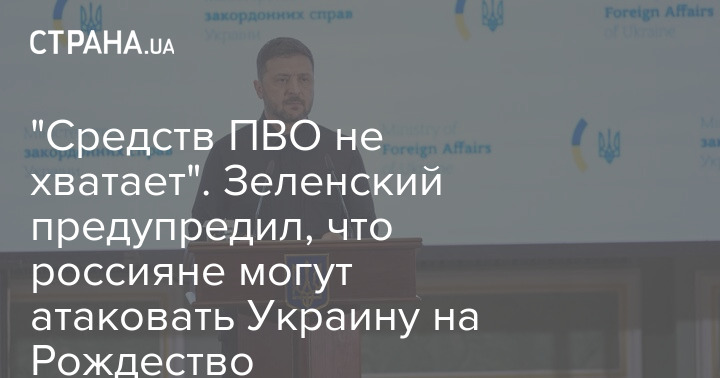 "Средств ПВО не хватает". Зеленский предупредил, что россияне могут атаковать Украину на Рождество