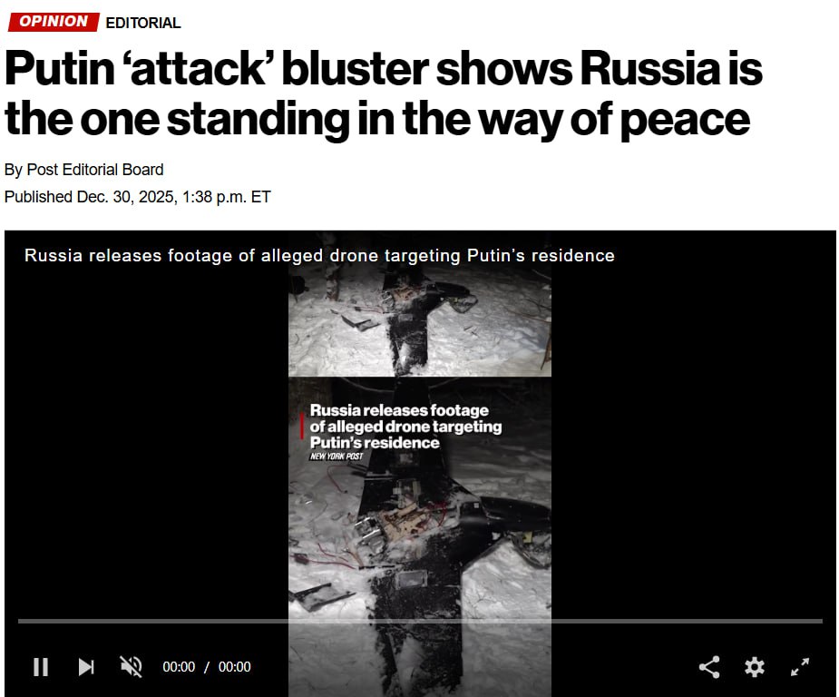 Кроме того, New York Post призывает к решительным мерам в отношении России после заявления Кремля об изменении позиции по переговорам в свете "удара по резиденции".