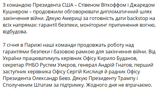 После встречи с Уиткоффом Зеленский сообщил, что Украина и США продолжат переговоры в Париже