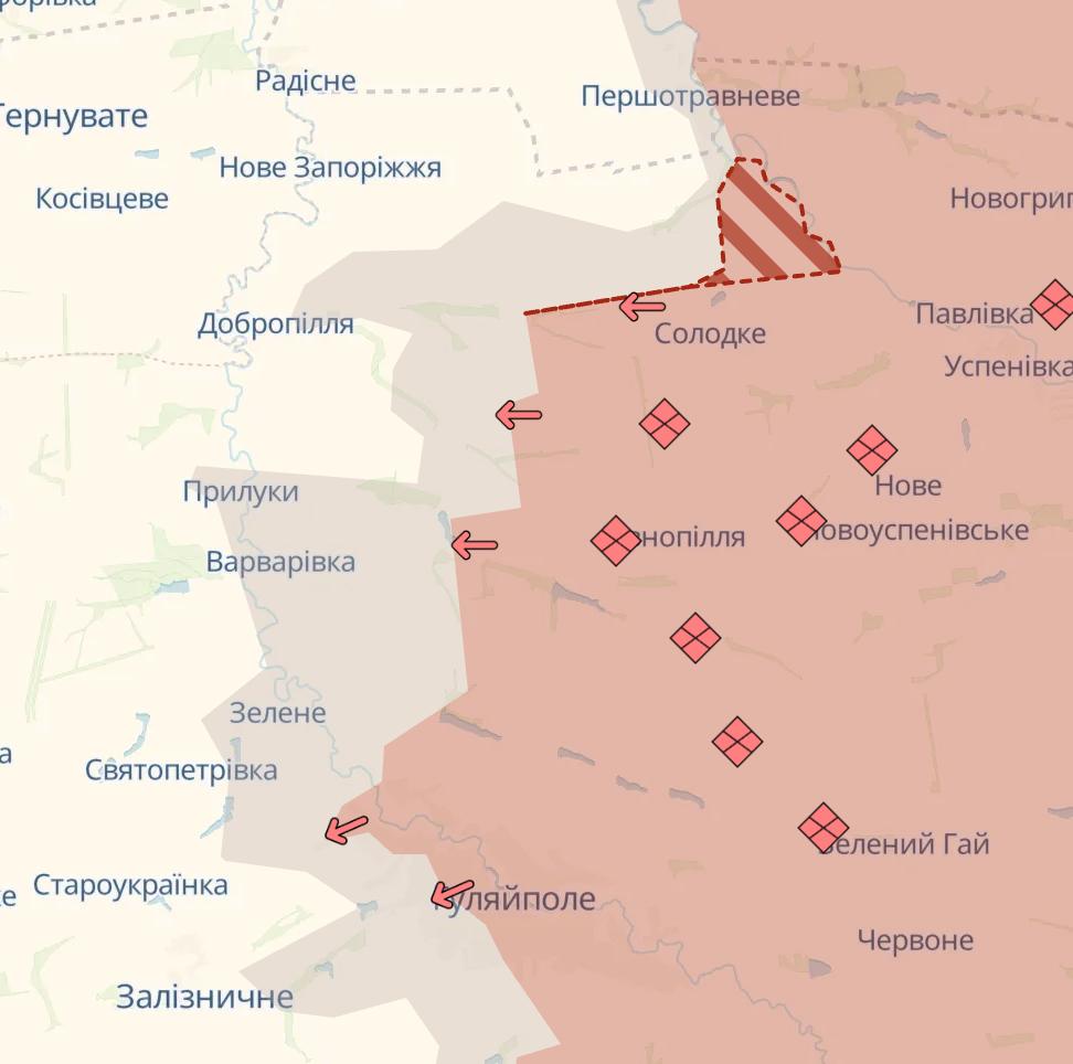 10.44 Армия РФ снова продвинулась в Покровске и севернее Мирнограда, а севернее Гуляйполя захвачено село Рыбное, сообщает Deep State.