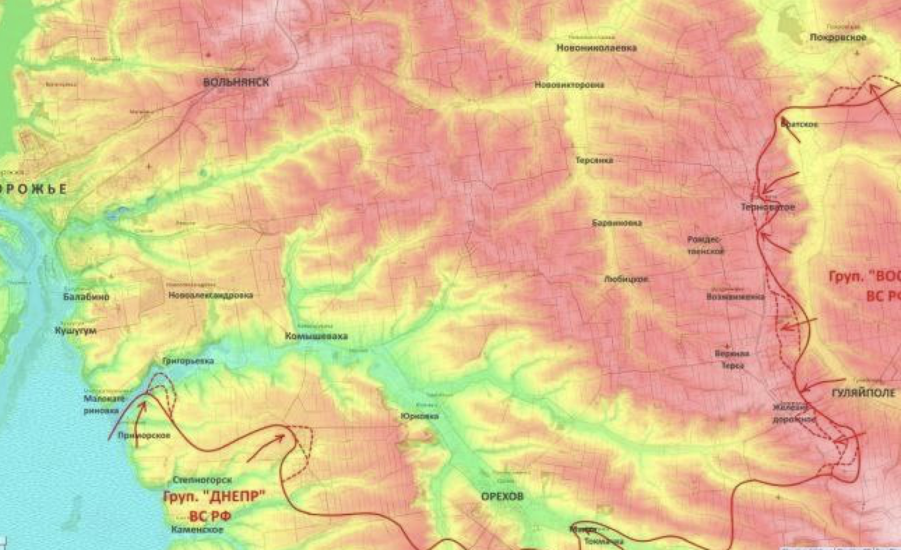 По данным паблика, российские войска продвинулись к северу от Гуляйполя, у сел Прилуки и Зеленое.
