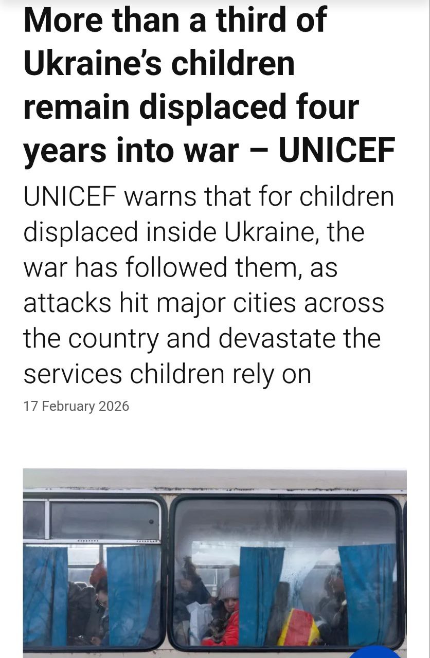 7.54 Более трети детей в Украине - 2 589 900 - остаются перемещенными спустя четыре года войны. Об этом сообщили в ЮНИСЕФ.