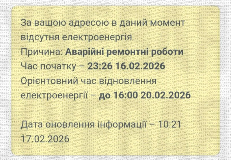 12:10 В части Одессы после ночного удара по объектам энергетики света может не быть трое суток, сообщает чат-бот ДТЭК.