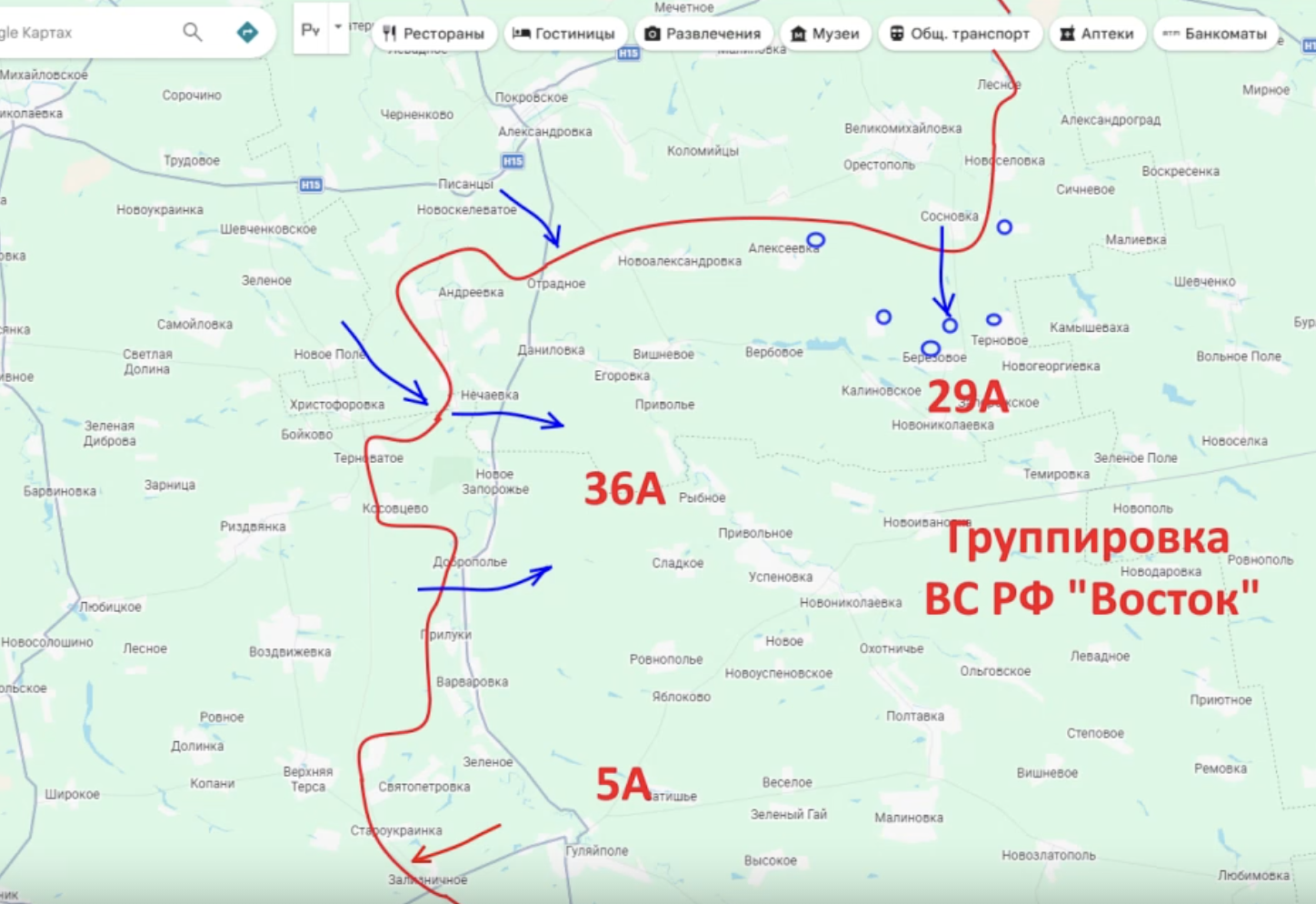 Российские военные паблики пишут, что контратаки украинских сил остановлены, и армия РФ снова начала свои атаки - как к югу от Запорожья, так и на Гуляйпольском направлении.