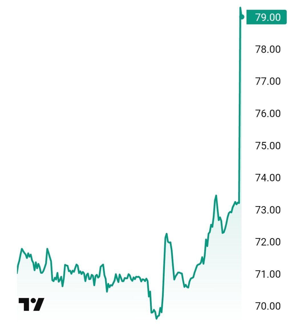 На первых торгах после начала ударов по Ирану котировки поднялись на 13% до 82 долларов за баррель и стали максимумальными с лета 2024 года. Позднее цена скорректировалась до 79 долларов. Но, как видно, опять поползла вверх.