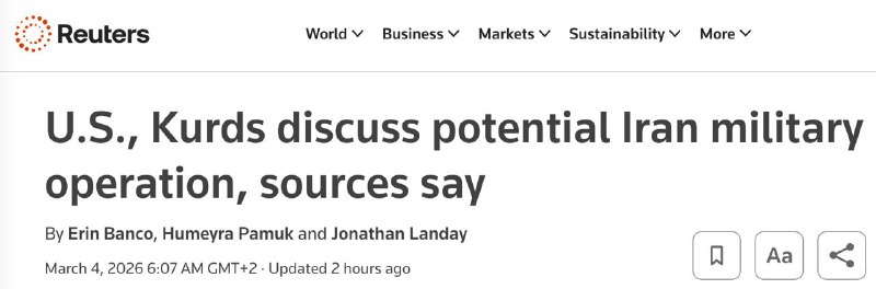 Напомним, ранее Трамп не исключил наземную операцию в Иране. Мы писали, что у США сейчас нет на Ближнем Востоке армии в сотни тысяч солдат, однако миллионы курдов живут в Иране, потому их можно попытаться подбить на восстание, предварительно организовав вторжение курдских отрядов из Ирака.