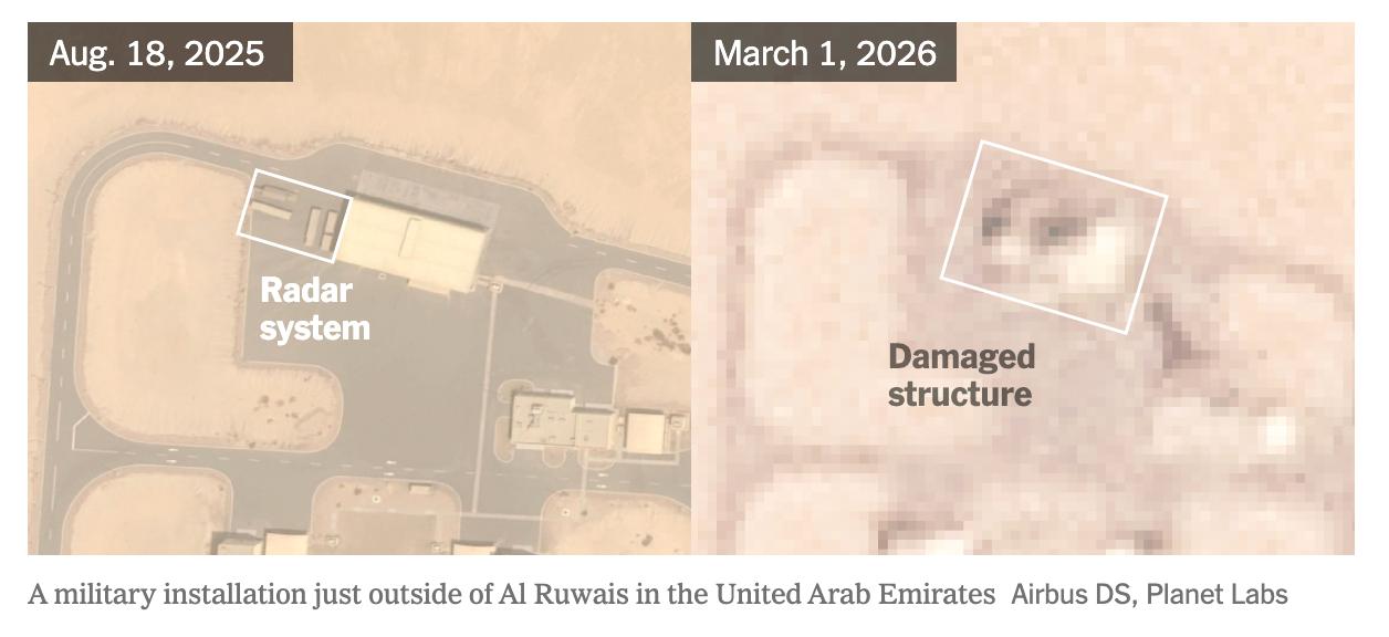 Кроме того, были поражены другие американские военные объекты в Дубае, Ираке, Кувейте и Иордании, но они находятся не рядом с системами связи или радиолокационными системами.