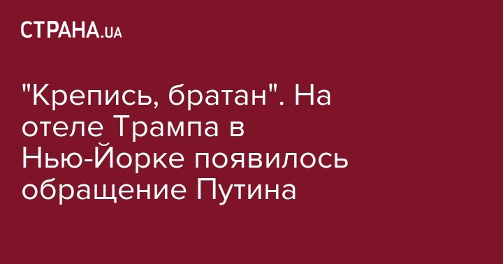 "Крепись, братан". На отеле Трампа в Нью-Йорке появилось обращение Путина