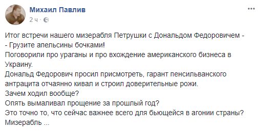 Политолог Михаил Павлив: "Итог встречи нашего мизерабля Петрушки с Дональдом Федоровичем - Грузите апельсины бочками!