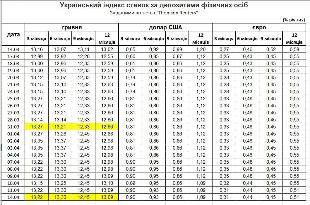 - на 3 місяці – 13,22% (після податків – 10,18%) річних;