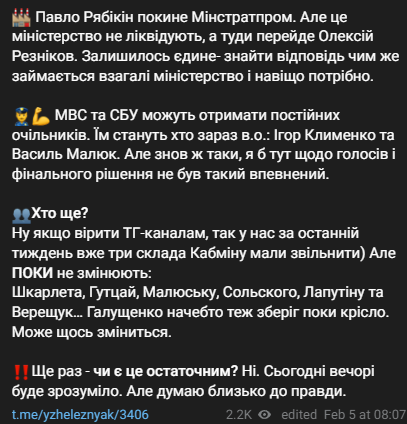 Наразі джерела "Страни" у владі не дають єдиної картини щодо перспектив Резнікова. Частина джерел інформацію про його відставку спростовує, частину підтверджує. Дехто вважає, що Резнікова можуть зробити міністром юстиції.