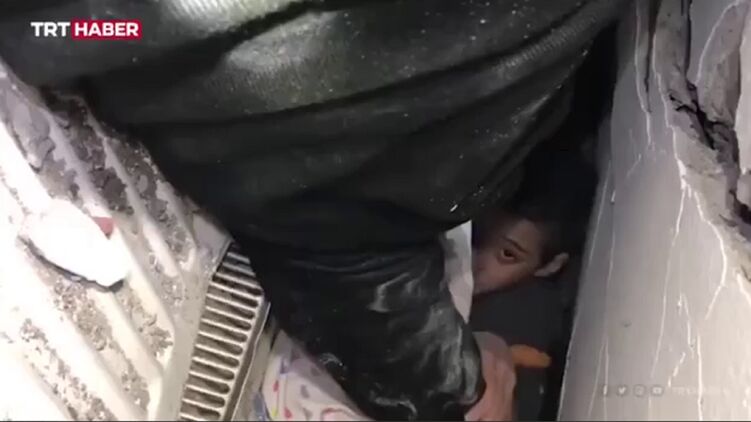 Порятунок дитини з-під завалів у Туреччині. Скріншот відео