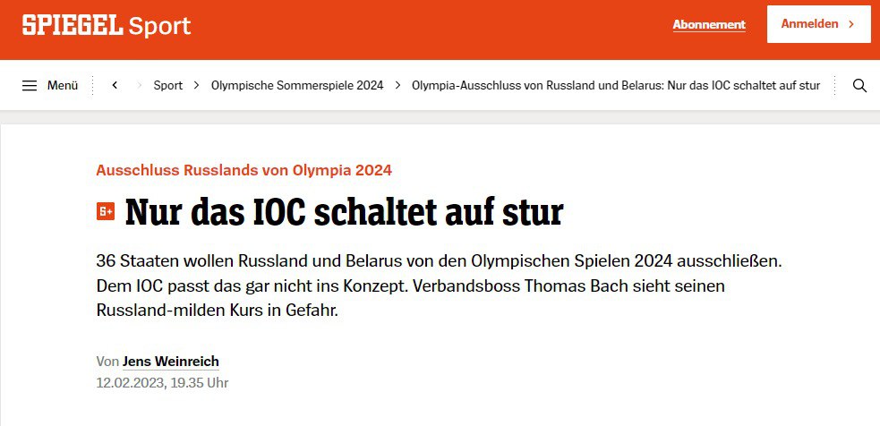 Однак МОК продовжує дотримуватися своєї позиції щодо допуску до змагань російських та білоруських спортсменів під нейтральним прапором. Глава МОК Томас Бах заявив, що це питання не повинне залежати від позицій урядів країн.