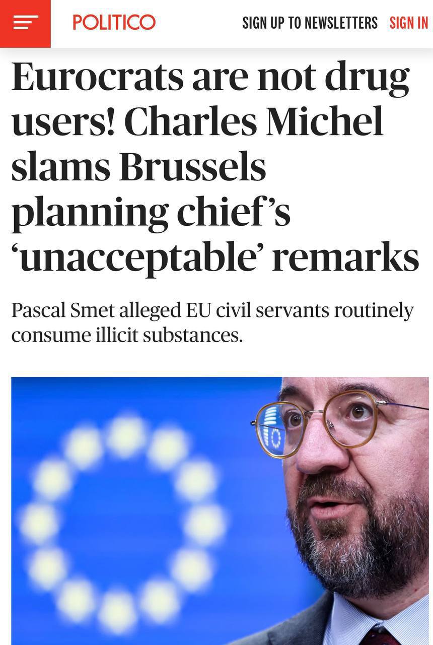 Президент Євроради Шарль Мішель розкритикував держсекретаря Брюсселя з питань міського планування Паскаля Смета за твердження, що "єврократи" регулярно вживають наркотики.