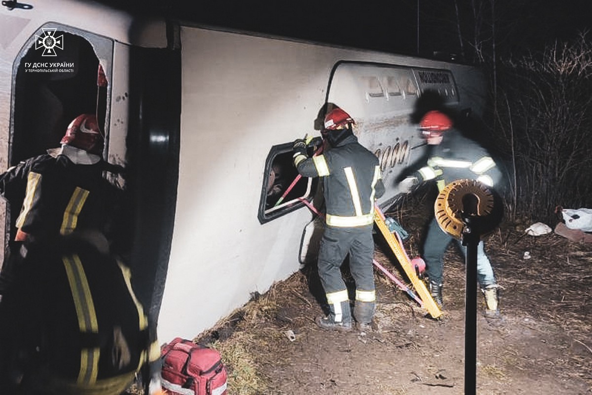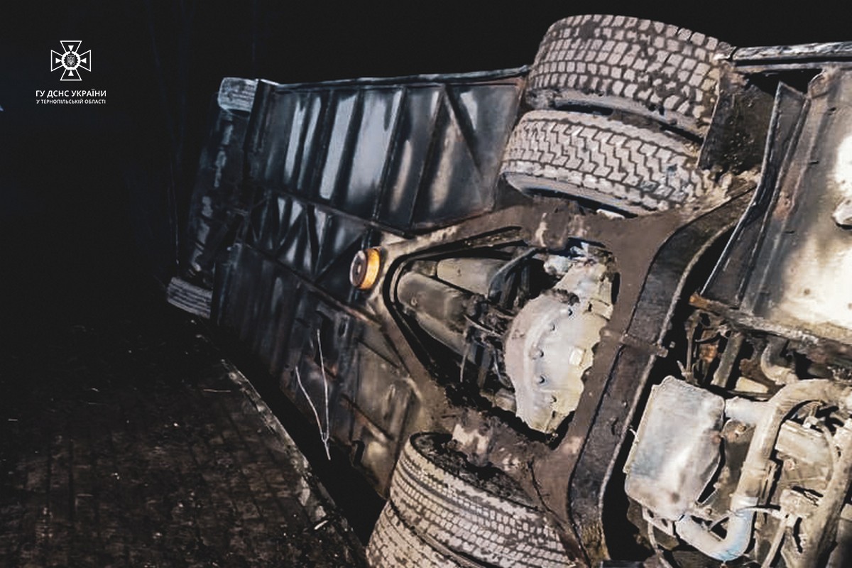 Біля Тернополя перекинувся автобус із пасажирами, які їхали з Буковеля. Є жертви. Фото